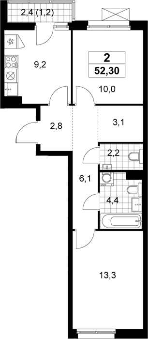 Площадь от 52 м2