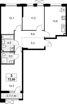 Площадь от 72 м2