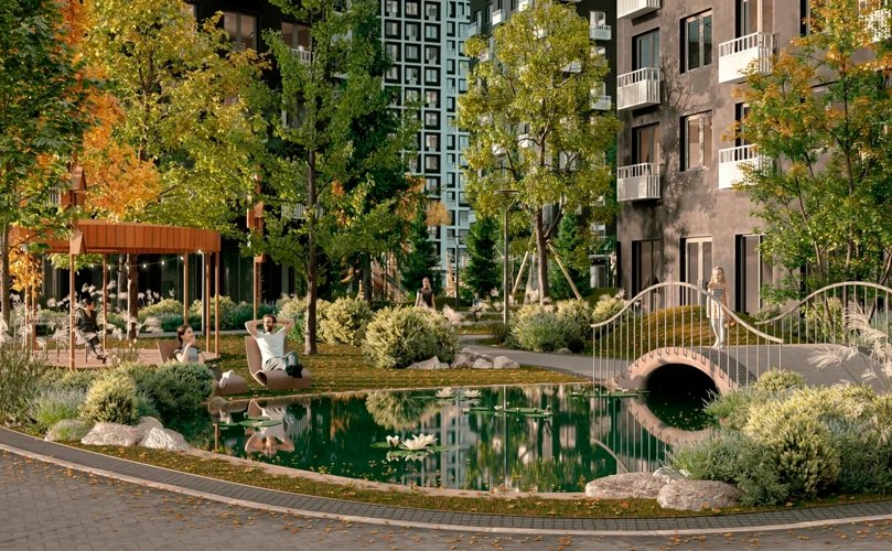 В жилом комплексе предложено более 200 вариантов планировок. Здесь есть квартиры с гардеробными, мастер-спальнями, окном в ванной, прачечной, а также квартиры с 5 окнами в кухне-гостиной и кабинетом.