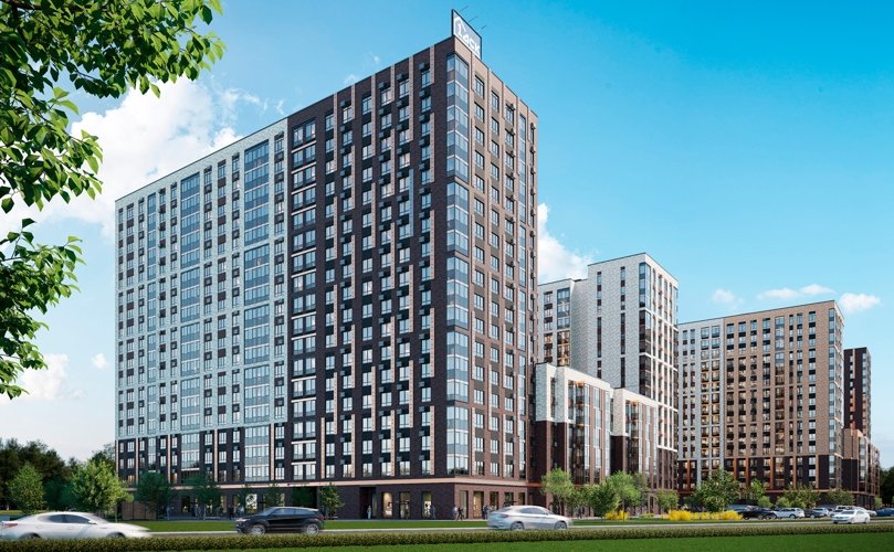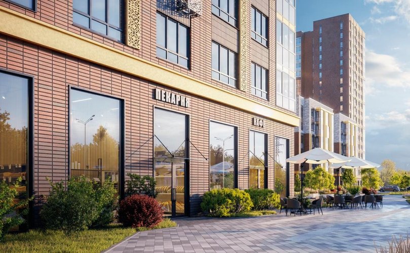 На первых этажах располагаются коммерческие помещения, а для владельцев автомобилей предусмотрен наземный многоуровневый паркинг и стоянка.